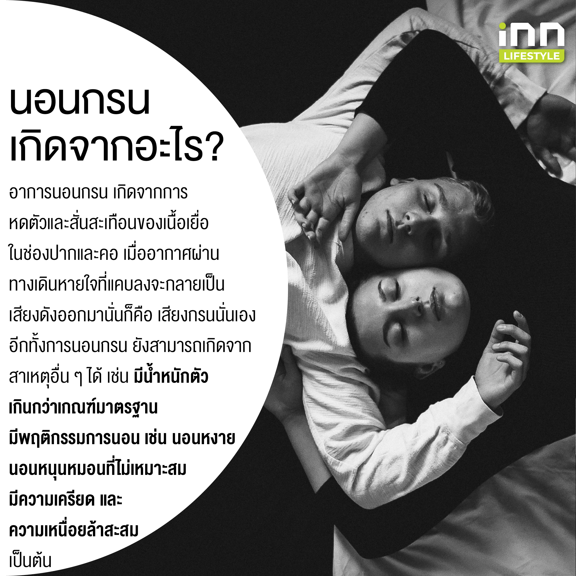 อาการนอนกรน เกิดจากการหดตัวและสั่นสะเทือนของเนื้อเยื่อในช่องปากและคอ เมื่ออากาศผ่านทางเดินหายใจที่แคบลงจะกลายเป็นเสียงดังออกมานั่นก็คือเสียงกรนนั่นเอง อีกทั้งการนอนกรนยังสามารถเกิดจากสาเหตุอื่น ๆ ได้ เช่น