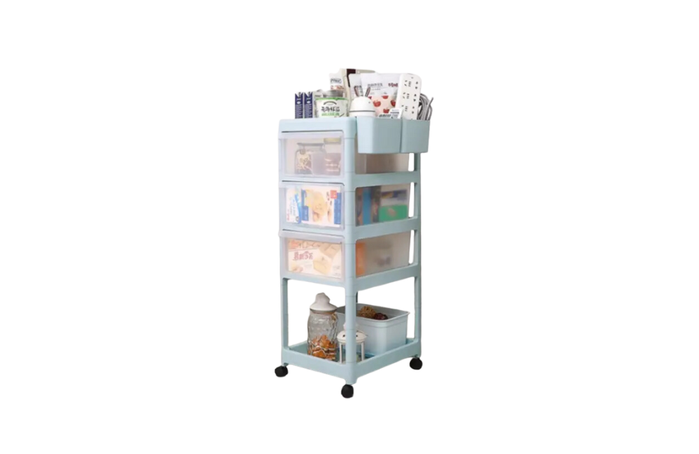 สำหรับชั้นวางของเคลื่อนที่ เป็นชั้นที่สามารถเคลื่อนย้ายไปตามจุดต่างๆ ได้ ส่วนใหญ่แล้วนิยมใช้กับร้านเสริมสวย ที่จะต้องใส่อุปกรณ์ในการทำผม ซึ่งสามารถเคลื่อนย้ายไปตามจุดต่างๆ เพื่อบริการลูกค้าได้อย่างลงตัว หรือจะนำมาวางเครื่องสำอางภายในบ้านก็ช่วยให้ใช้งานง่ายเช่นกัน