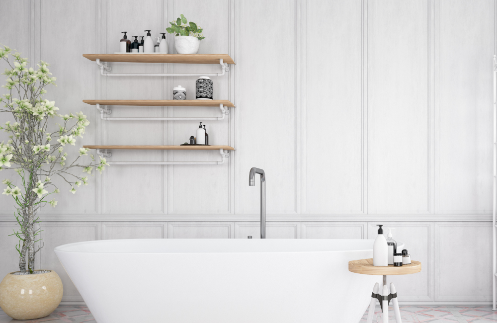 ในส่วนของห้องน้ำ ต้องการพื้นที่ในการวางสบู่ ครีมอาบน้ำ หรือน้ำยาสระผม ซึ่งเหมาะกับการใช้ชั้นลอย ที่สำคัญควรเลือกชั้นลอยที่สามารถระบายน้ำได้ดี ไม่มีน้ำขัง และควรเลือกชั้นวางที่ทำจากวัสดุที่ทนต่อการกัดกร่อน ไม่ขึ้นสนิมได้ง่าย เพราะห้องน้ำเป็นห้องที่มีความชื้นสูงเสี่ยงต่อการเกิดสนิมได้ง่าย