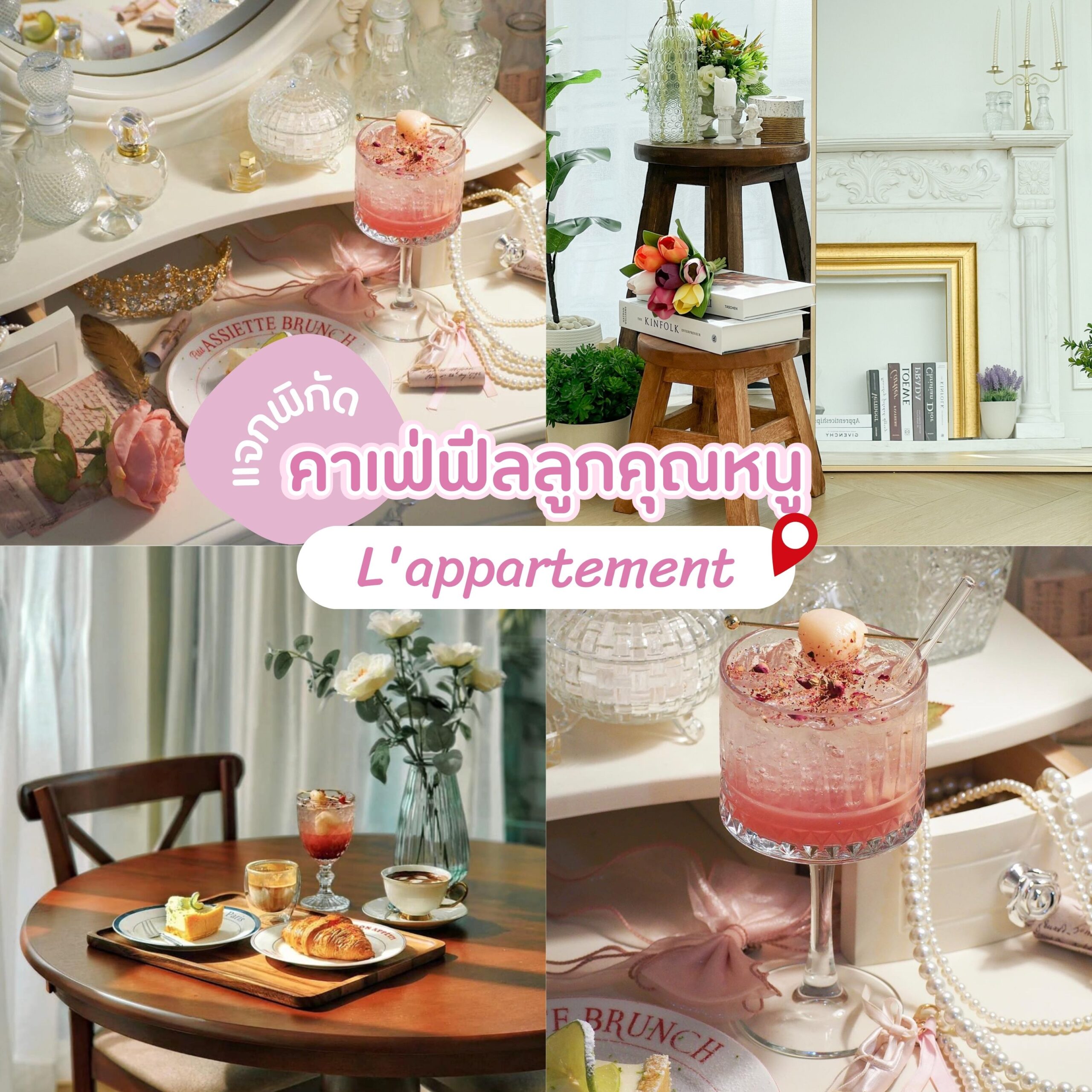 Café L’appartement คาเฟ่ลับบรรยากาศดีที่ซ่อนตัวอยู่ในซอยรัชดาภิเษก ภายในร้านมี 3 ชั้นตกแต่งแนวคาเฟ่สไตล์โฮมมี่ ๆ ฝรั่งเศส ใช้โทนสีชมพู ครีม ขาว ดูหวาน ๆ มีพื้นที่ให้นั่งชิล มีมุมให้ถ่ายรูปน่ารัก ๆ เยอะมาก สำหรับสาว ๆ สายหวาน เราว่าที่นี่เหมาะ!!
