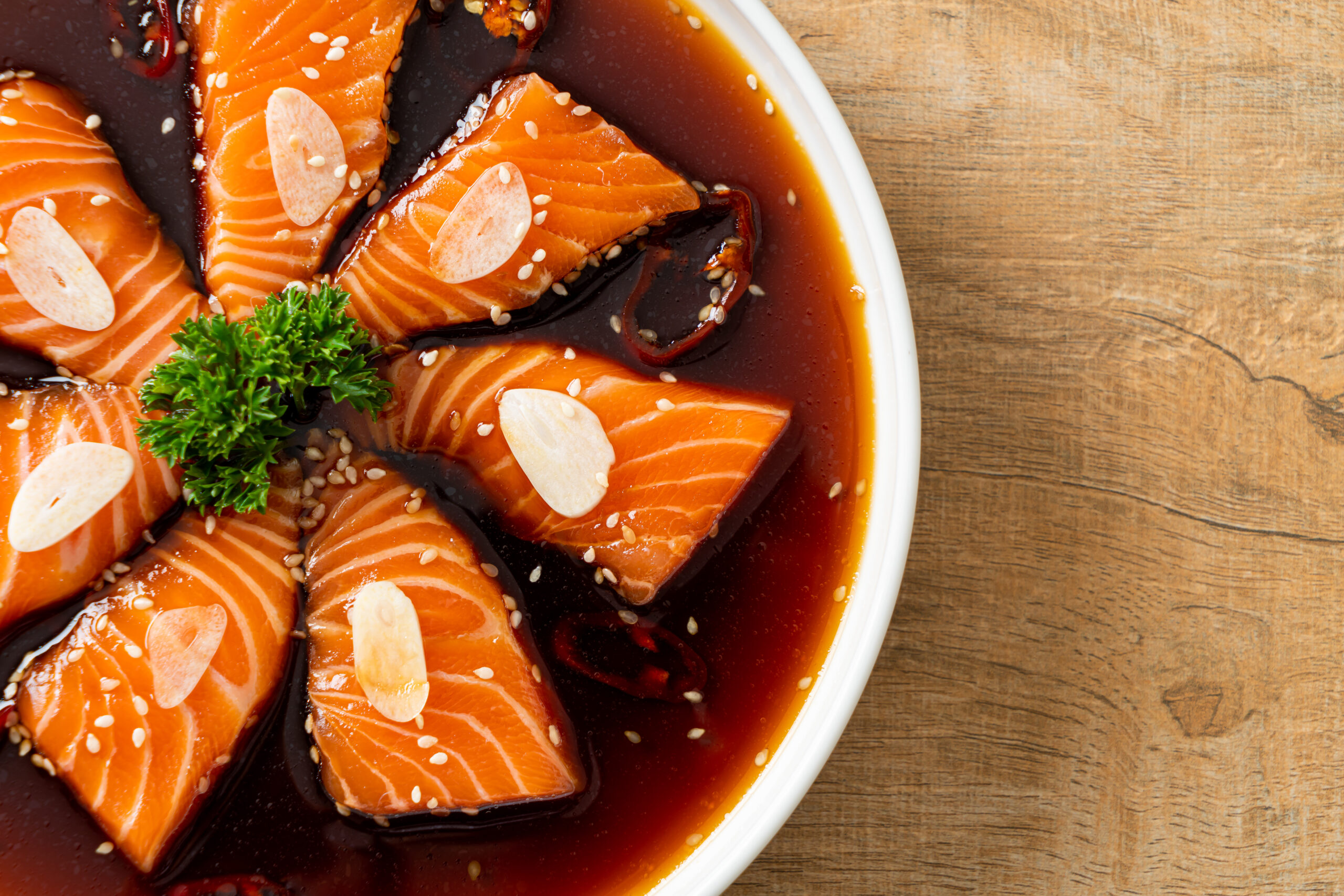 เมนูฮิตมาแรงของคนรักแซลมอนอย่างเมนูแซลมอลดองเกาหลีต้องหลบไป เพราะวันนี้เรามีสูตรเด็ดกว่า ถ้าถามว่าเด็ดขนาดไหน ก็เด็ดจนอยากให้ติดท็อปน้ำดองที่อร่อยที่สุด กับสูตรน้ำดองคาราเมล น้ำดองที่มีความหอมของน้ำตาลไหม้ บวกกับรสชาติหวานนำ เค็มตาม จะกินเปล่าๆ หรือกินกับข้าวสวยและสาหร่ายก็ฟินสุดๆ บอกเลยว่ากินคู่น้ำจิ้มซีฟู้ดคืออร่อยน้ำตาไหล!! ส่วนวัตถุดิบและขั้นตอนการทำจะมีอะไรบ้าง ตามไปดูกันเลย! 🐟😋