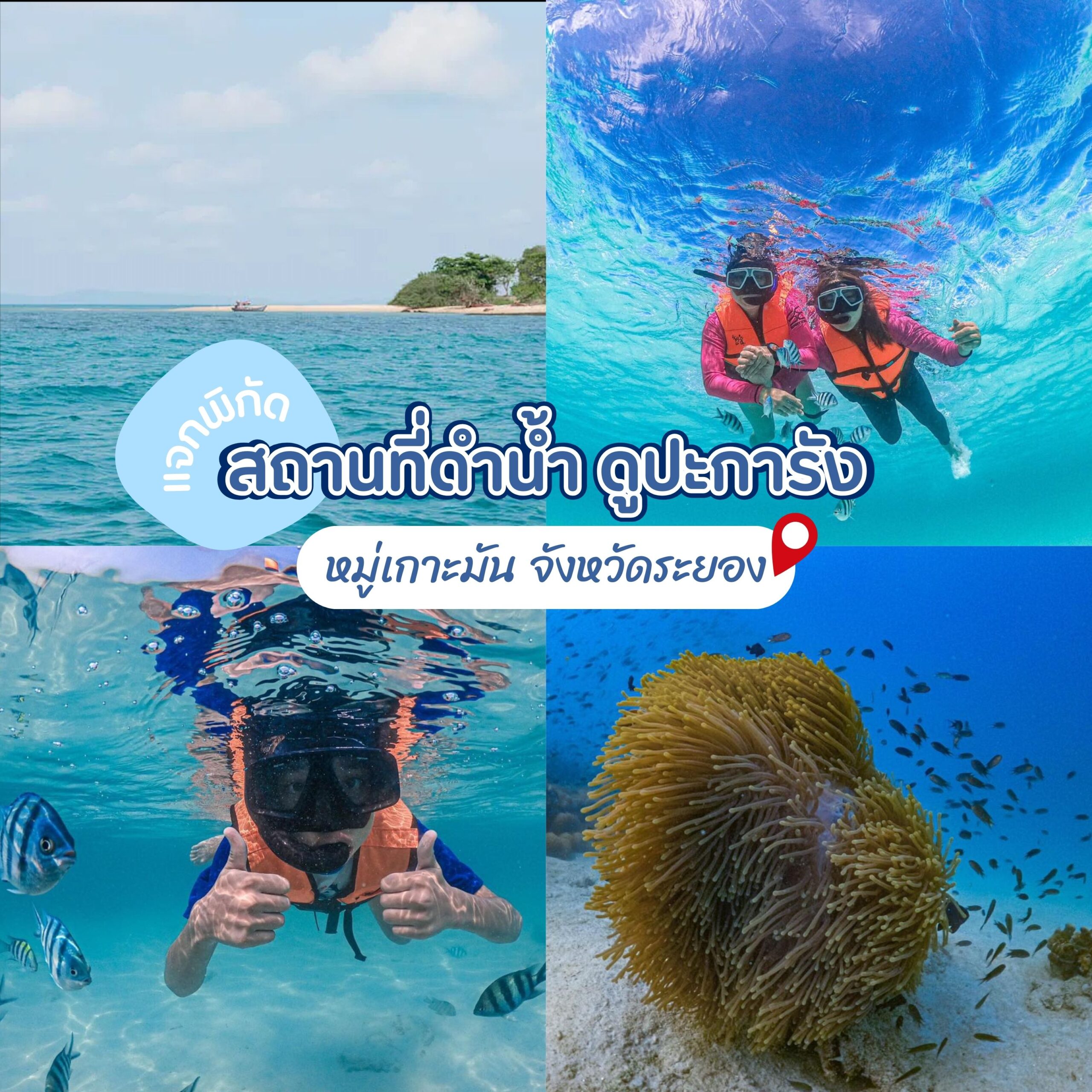 หมู่เกาะที่ได้ขึ้นชื่อว่าเป็นสวรรค์ของท้องทะเลภาคตะวันออก เพราะรายล้อมไปด้วยแนวปะการังสวย ๆ ทั้งแนวปะการังธรรมชาติและแนวปะการังเทียมรูปแบบต่างๆ น้ำทะเลสวยใส หาดทรายสีขาว เนื้อทรายเนียนละเอียด สำหรับคนรักการดำน้ำหมู่เกาะมัน จังหวัดระยอง นับเป็นอีกหนึ่งสถานที่ที่เหล่านักดำน้ำไม่ควรพลาด เพราะมีแนวปะการังสวย ๆ มากมาย และในบางช่วงที่น้ำลดจะก็มีทะเลแหวกให้ได้เดินเที่ยวด้วย ต้องไปเช็กอินแล้ว