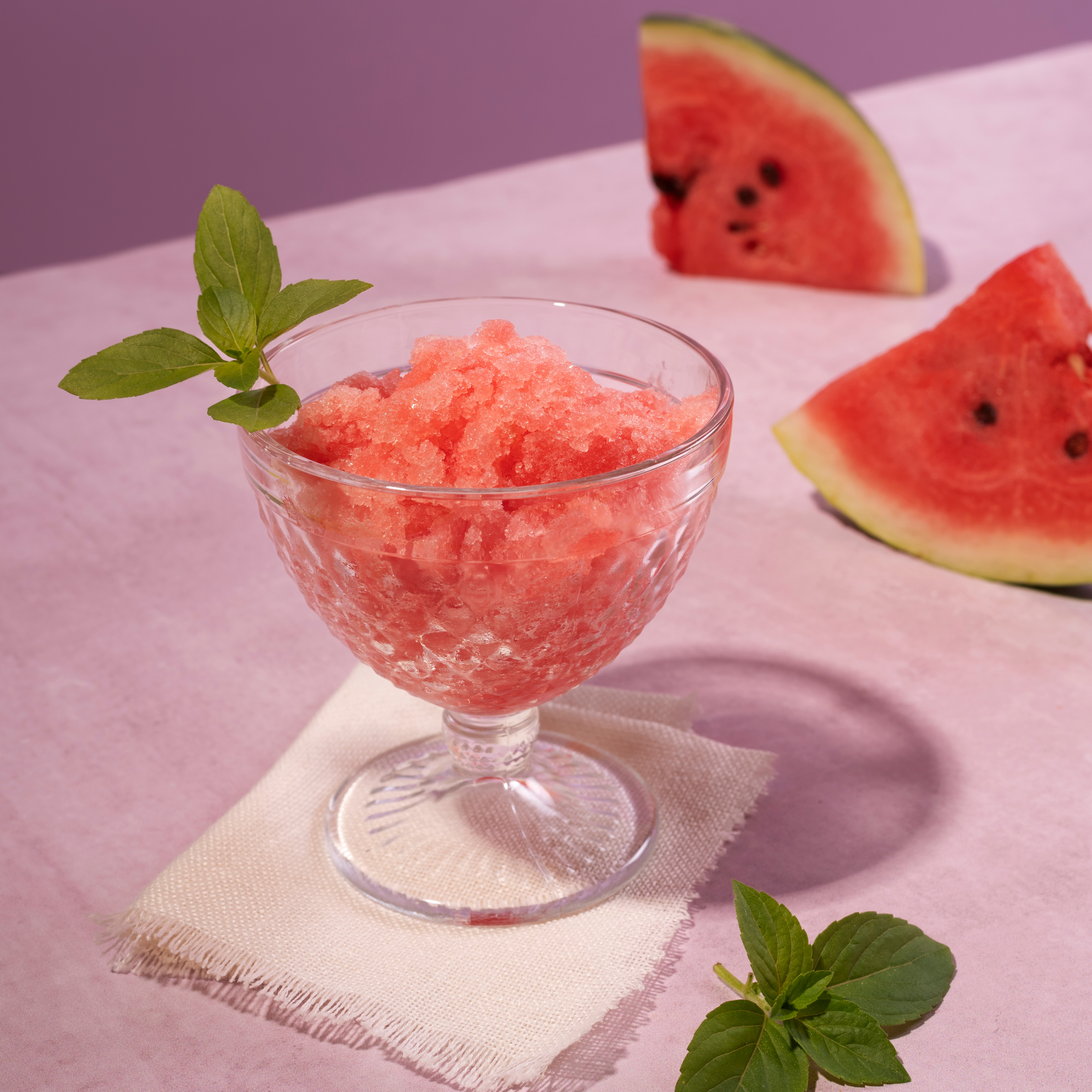 ขั้นตอนที่ 1 : เริ่มที่การนำแตงโมมาล้างให้สะอาด จากนั้นนำแตงโมที่เตรียมไว้มาหั่นเป็นชิ้นๆ แล้วนำไปแช่แข็ง แนะนำว่าให้แช่ไว้ข้ามคืนเลยนะ (เพราะจะได้แตงโมที่เป็นเกล็ดน้ําแข็งนำไปขูดได้ง่าย)