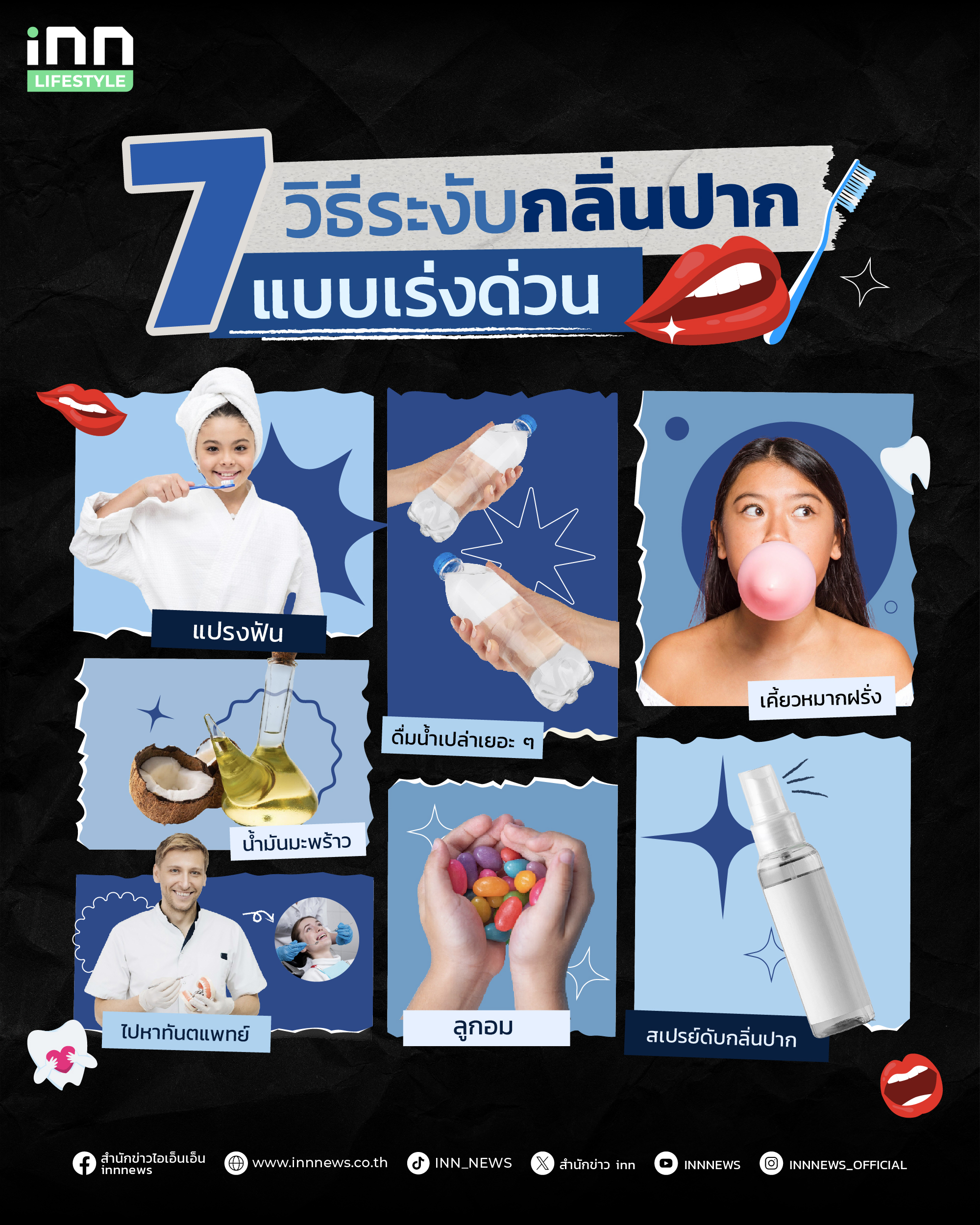 การที่กลิ่นปากจะหมดไปได้นั้น ไม่ได้ขึ้นอยู่กับวิธีแก้ที่ปลายเหตุเท่านั้น แต่ยังควรกลับไปแก้ไขที่ต้นเหตุ อย่างการดูแลสุขภาพและสุขอนามัยของช่องปาก รวมถึงการเลือกรับประทานอาหารด้วย เพียงเท่านี้ก็ช่วยให้กลิ่นปากไม่พึงประสงค์หายไป และได้ลมหายใจสดชื่นมั่นใจกลับมาเเล้วค่ะ สำหรับใครที่ไม่อยากพลาดทุกเรื่องอินเทรนด์ สามารถติดตาม ข่าวหรือ ไลฟ์สไตล์ต่างๆได้ที่ iNN Lifestyle
