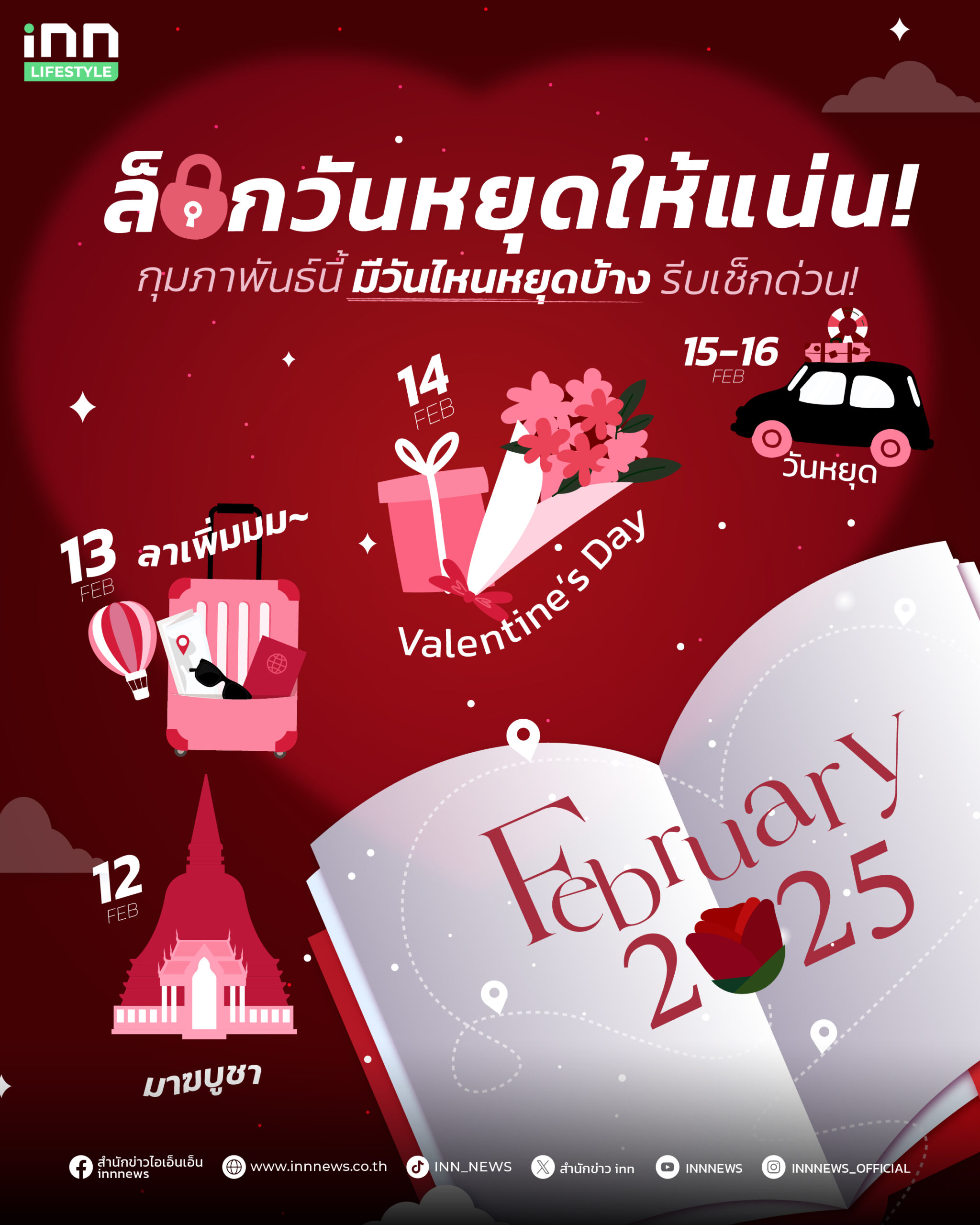 💡 ทริคเนียน ๆ : ลาวันพฤหัสบดี-ศุกร์ แถมได้หยุดวันวาเลนไทน์พอดี ฉะนั้นจะไปเที่ยวหรือไปเดตก็จัดไปเลยค่าา!