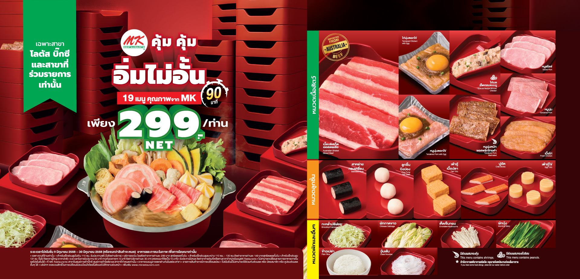 ชวนเพื่อนมาตี้ด่วน! MK จัดหนักจัดเต็ม กับ บุฟเฟต์ 299 บาท/คน อิ่มไม่อั้น 90 นาที เลือกซุปได้ตามใจ มาพร้อมเมนูเด็ด สุดพรีเมียมกว่า 19 เมนู ใครเป็นสายกิน ห้ามพลาด