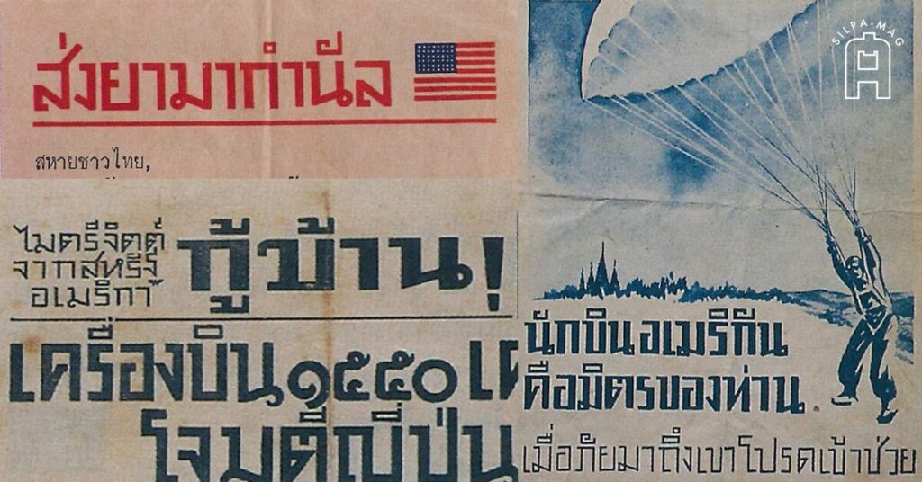 อีกหนึ่งรูปแบบของโฆษณาชวนเชื่อที่เคยถูกใช้ในอดีตคือ ‘ใบปลิว’ ในระหว่างสงครามโลกครั้งที่ 2 ทั้งฝ่ายญี่ปุ่นและฝ่ายพันธมิตรใช้ใบปลิว ในการชักจูงคนไทยให้มาเข้าข้างฝ่ายของตน