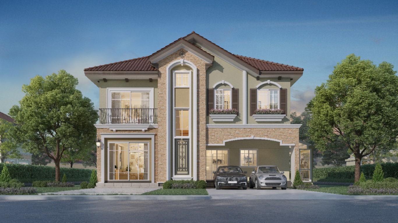 บ้านเดี่ยว 2 ชั้น สไตล์ European ที่โดดเด่นด้วยสถาปัตยกรรมที่งดงาม โครงการจัดวางพื้นที่ใช้สอยก็ลงตัวมีพื้นที่สีเขียวส่วนตัวทำให้ได้พักผ่อนท่ามกลางธรรมชาติได้อย่างเต็มที่