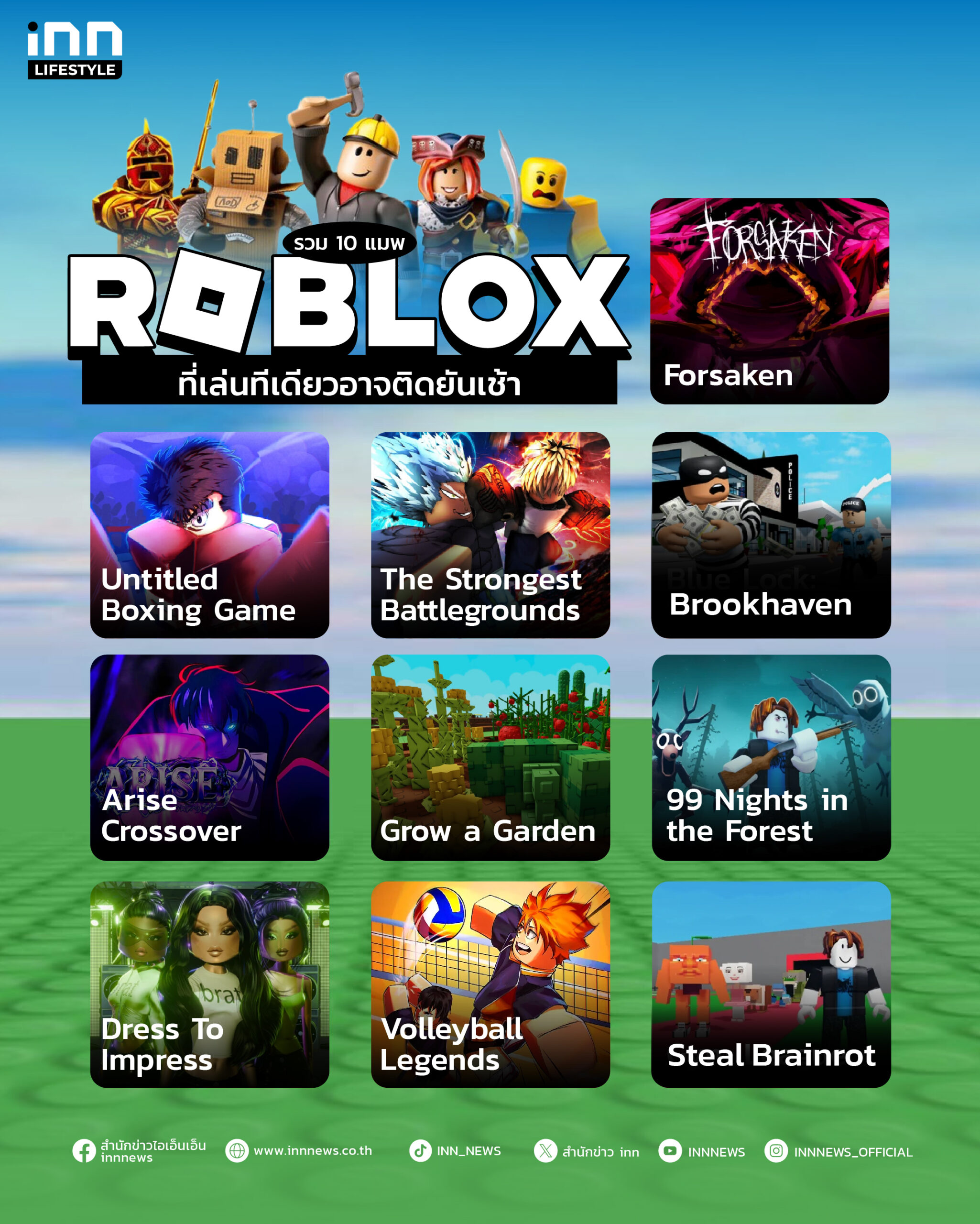 ทั้งหมดนี้คือ 10 แมพ Roblox ยอดนิยมในปี 2025 ซึ่งแสดงให้เห็นว่า Roblox ไม่ใช่แค่เกม แต่เป็นพื้นที่ของโลกแห่งจินตนาการอย่างไร้ขอบเขต ไม่ว่าคุณจะอยากสวมบทบาทเป็นอะไร ก็สามารถเป็นได้ตามใจต้องการ สามารถสร้างตัวละครของคุณเอง และพูดคุยกับเพื่อน ๆ ในคอมมูนิตี้ต่าง ๆ ได้ดังใจนึก ขอให้สนุกกับการผจญภัยในโลกของ Roblox ครับ