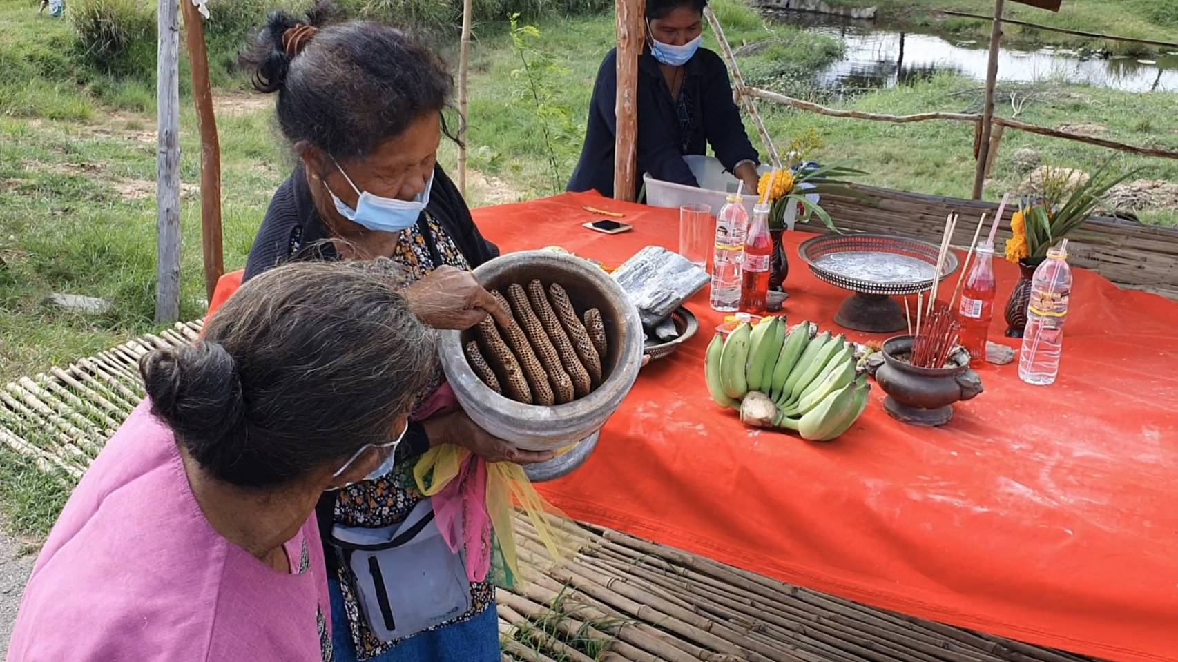 จากการสอบถามนางบุบผา ปาสาเลา เจ้าของครกดังกล่าว เปิดเผยว่า หลายวันก่อนได้ฝันว่าเดินเข้าไปในป่า แล้วเจอรังผึ้งขนาดใหญ่ หลังจากนั้นฝูงผึ้งได้ขอไปอยู่ด้วย ตนเองจึงสะดุ้งตื่น หลังจากนั้นก็มักจะพบว่ามีตัวผึ้งบินวนเล่นแสงไฟที่บ้านอยู่หลายวัน จึงได้ช่วยกันหารังผึ้งรอบๆ บ้าน แต่หาเท่าไรก็หาไม่เจอ จนกระทั่งมาพบว่าผึ้งได้เข้ามาทำรังที่ด้านในครกไม้ที่ตั้งอยู่บนชั้นวาง ซึ่งครกไม้ดังกล่าวมีความพิเศษคือเป็นครกไม้ที่ใช้เฉพาะตำส้มตำเวลาออกไปทำบุญโรงทานตามวัดต่างๆ เท่านั้น