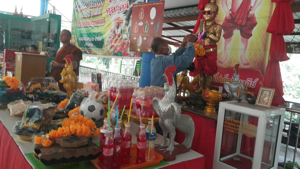 พระใบฏีกาปฏิญญา เล่าให้ฟังว่าก่อนหน้านี้ มีพระที่รู้จักกันได้นำไอ้ไข่มาจาก จ.นครศรีธรรมราชมาให้ผู้คนที่ศรัทธาไม่ต้องเดินทางไปไกลไปบูชาถึงภาคใต้ได้ประมาณ 1 ปีเศษ จนเป็นที่รู้จัก ทั้งการขอโชคลาภ หน้าที่การงาน การเงิน ให้สุขภาพแข็งแรง และ ก่อนหวยออก โดยจะนำไอ้ไข่ให้ดึงผู้คนเข้าวัด มาช่วยกันสร้างพระอุโบสถหลังใหม่ที่เพิ่งวางศิลาฤกษ์กำลังดำเนินการก่อสร้าง
