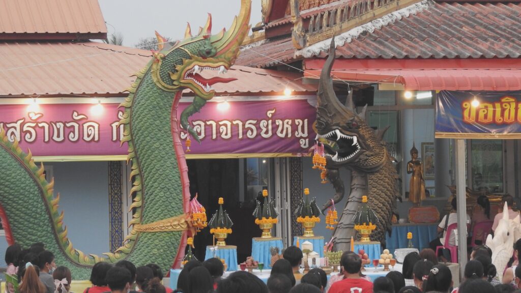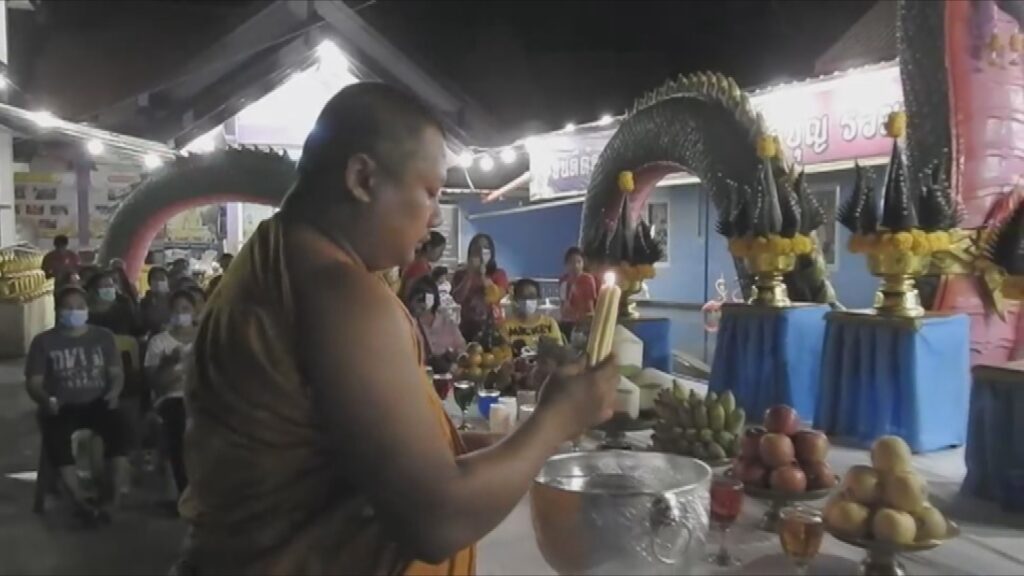 บวงสรวงพ่อปู่ศรีสุทโธนาคราช แห่ร่วมพิธี ขอขมากรรม และบวงสรวงพ่อปู่ศรีสุทโธนาคราช พ่อปู่มุจรินนาคราช ชาวบ้านจำนวนมากแห่ส่องเลขเด็ด