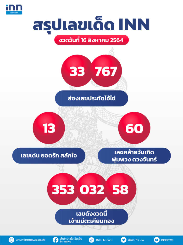สรุปเลขเด็ด เลขมาแรง งวดวันที่ 16 สิงหาคม 2564 กับ ไอ.เอ็น.เอ็น.