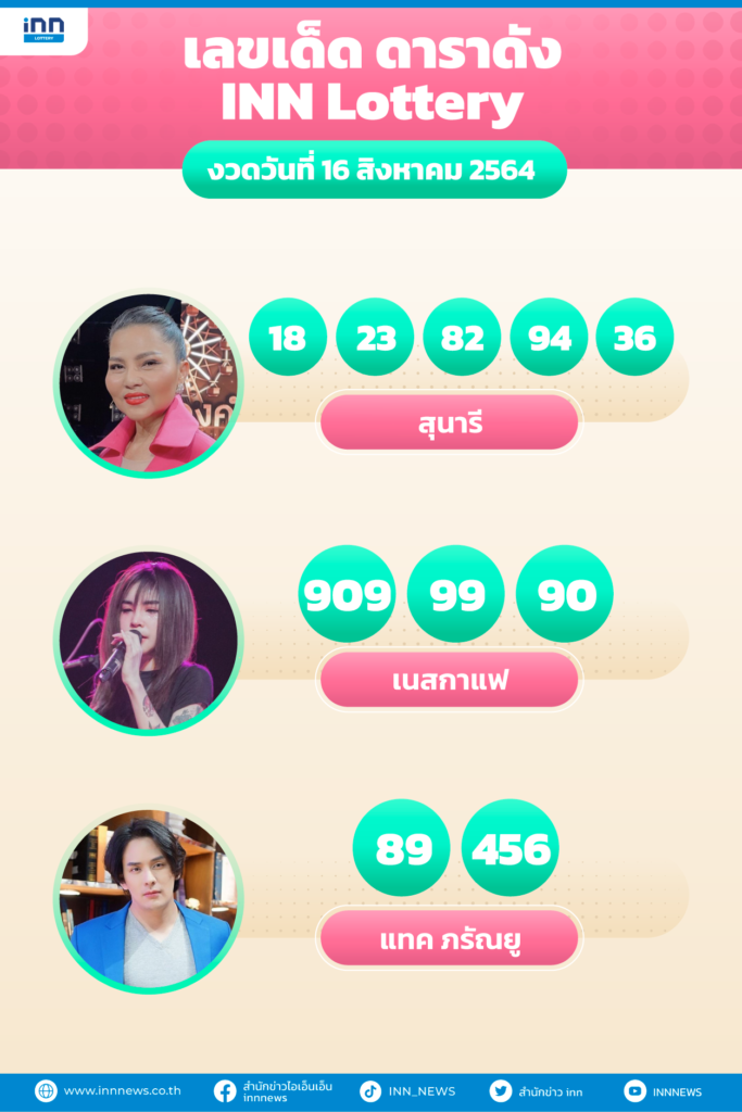 รวมเลขเด็ด ดาราดัง INN Lottery งวดวันที่ 16 สิงหาคม 2564
