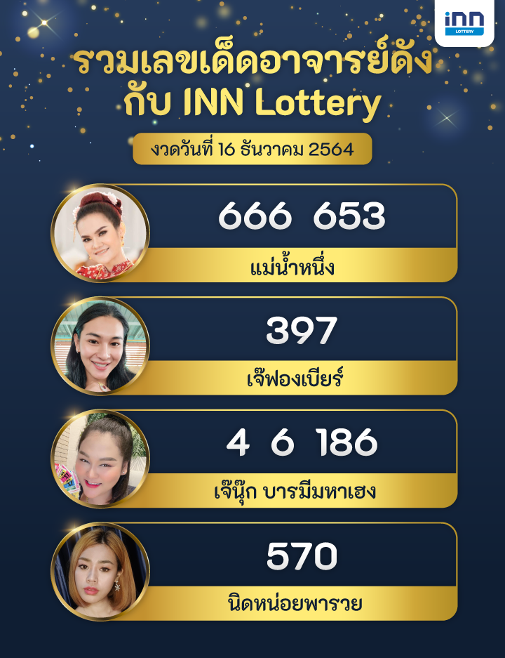 รวมเลขเด็ด อาจารย์ดัง กับ INN Lottery งวดวันที่ 16 ธันวาคม 2564