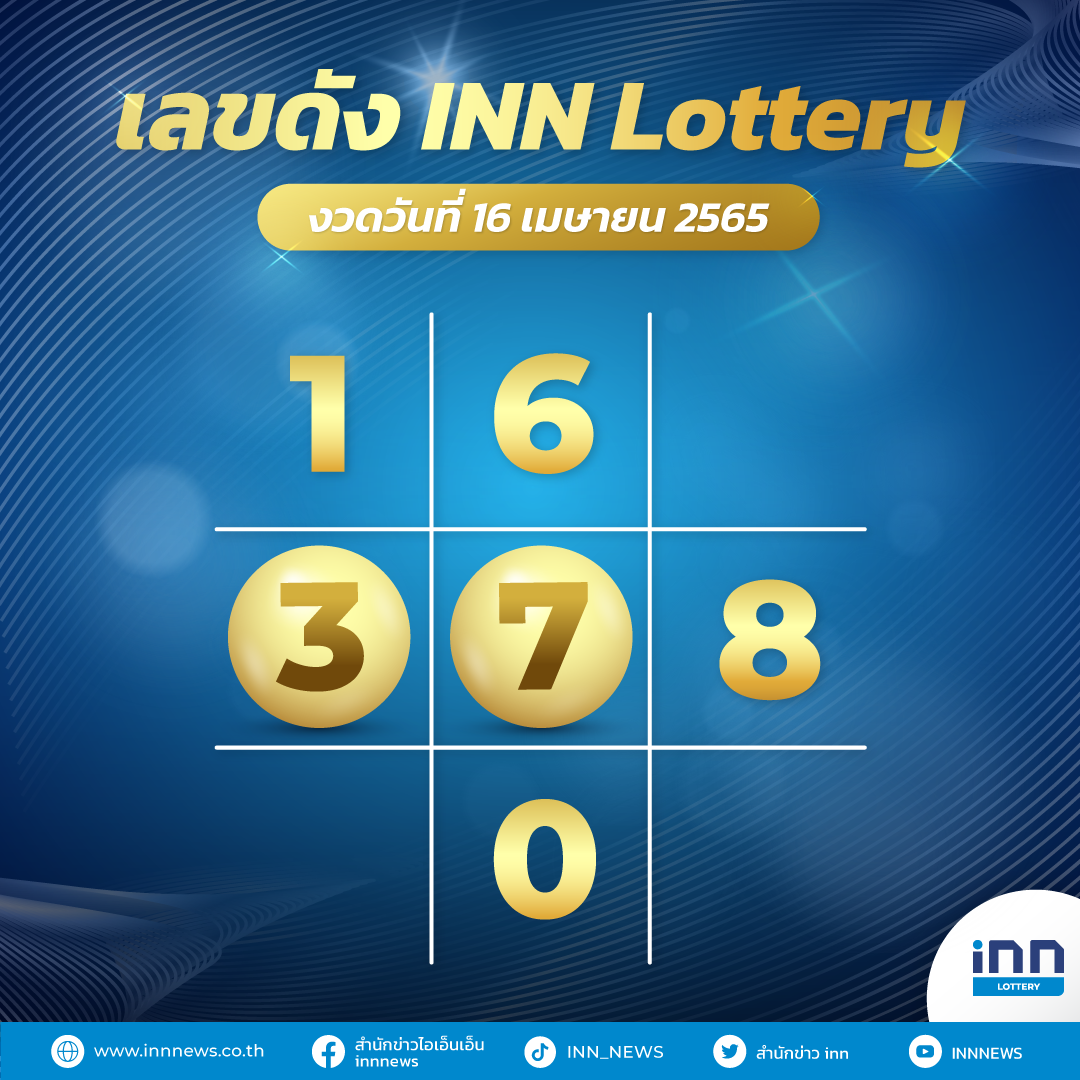 เลขดัง งวดวันที่ 16 เมษายน 2565 กับ INN Lottery