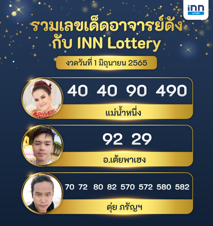 รวมเลขเด็ด อาจารย์ดัง กับ INN Lottery งวดวันที่ 1 มิถุนายน 2565