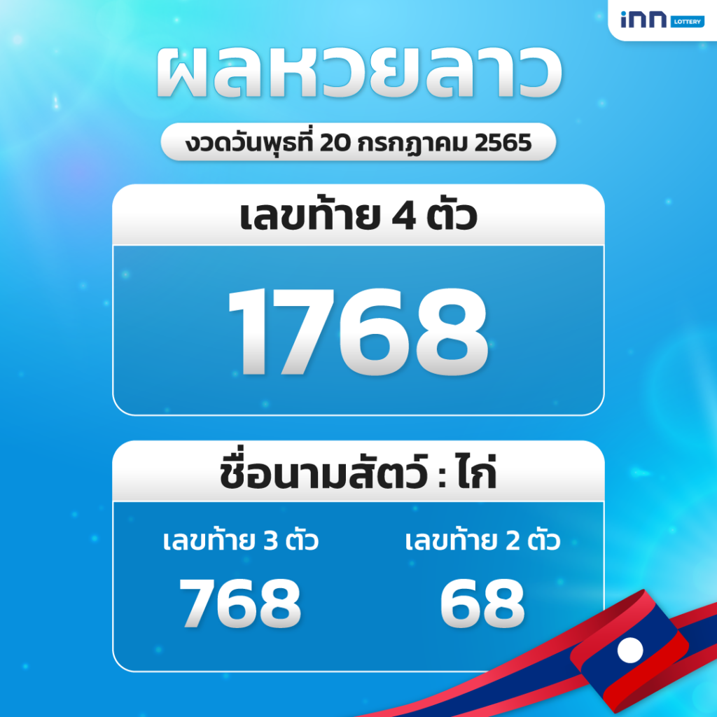 ผลหวยลาวงวดวันที่ 20 กรกฏาคม 2565