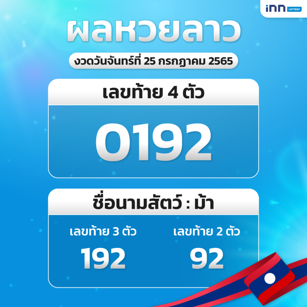 ผลหวยลาวงวดวันที่ 25 กรกฏาคม 2565