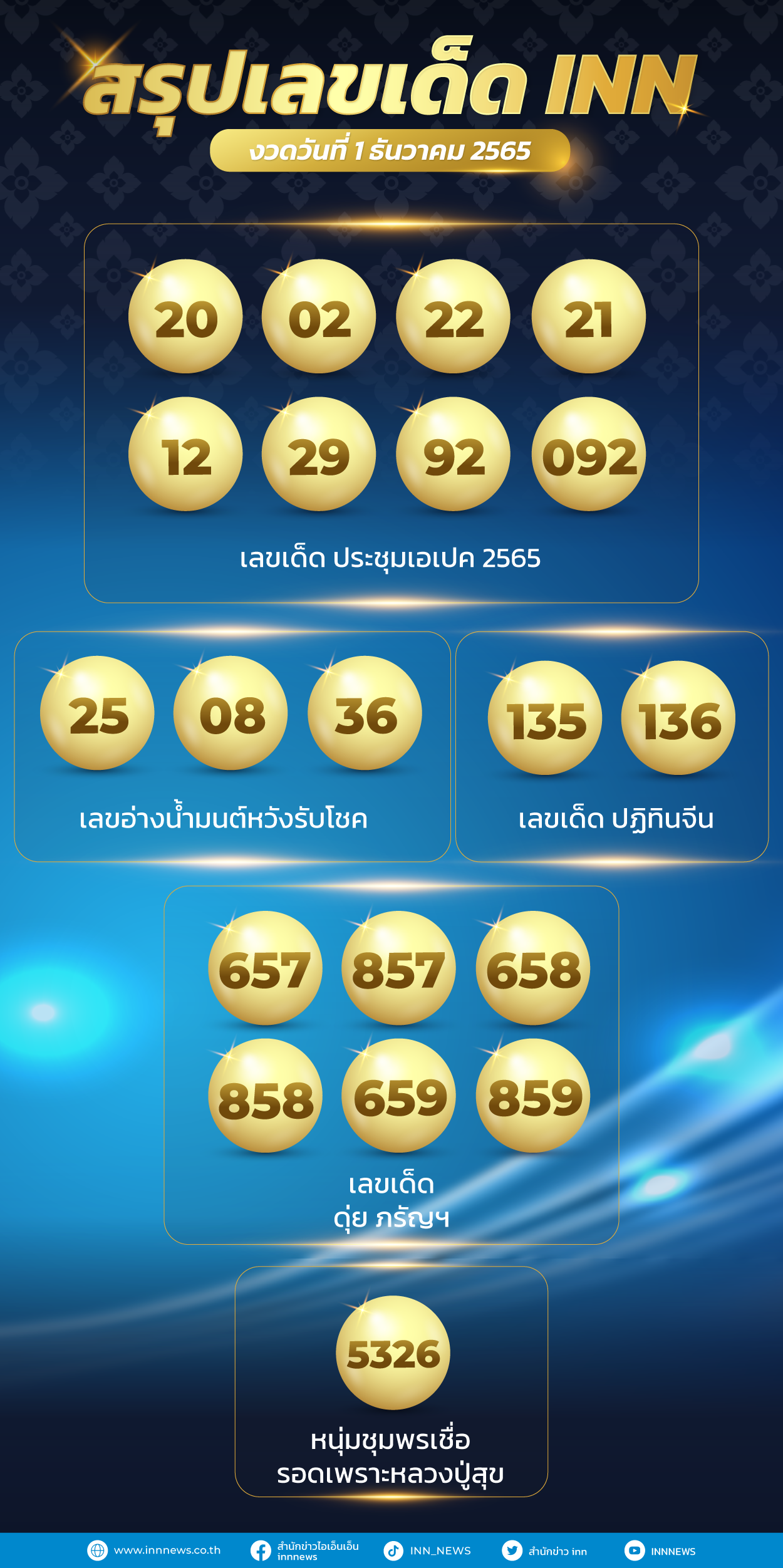 มาแล้วรวมเลขเด็ด เลขเจ๊ฟองเบียร์ เลขแม่น้ำหนึ่ง เลขเจ๊นุ๊ก เลขจากทั่วไทยกับสรุปเลขเด็ด เลขมาแรง งวดวันที่ 1 ธันวาคม 2565 กับ ไอ.เอ็น.เอ็น.