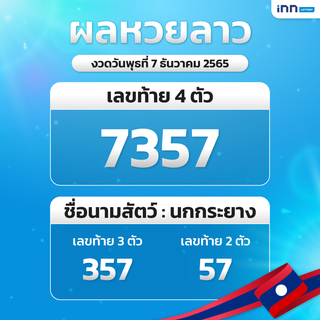 ตรวจผลหวยลาวงวดล่าสุด ຫວຍລາວหรือหวยพัฒนาวันนี้วันที่ 8 ธันวาคม 2565 มาตรวจผลหวยลาวย้อนหลัง ผลหวยลาวงวดวันที่ 7 ธันวาคม 2565 สำหรับหวยลาวจะออกทุกวันจันทร์ พุธ ศุกร์ สำหรับหวยลาววันนี้ ผลหวยลาวประจำวันที่ 7/12/2565 ตรวจผลหวยลาวย้อนหลังได้ที่นี่