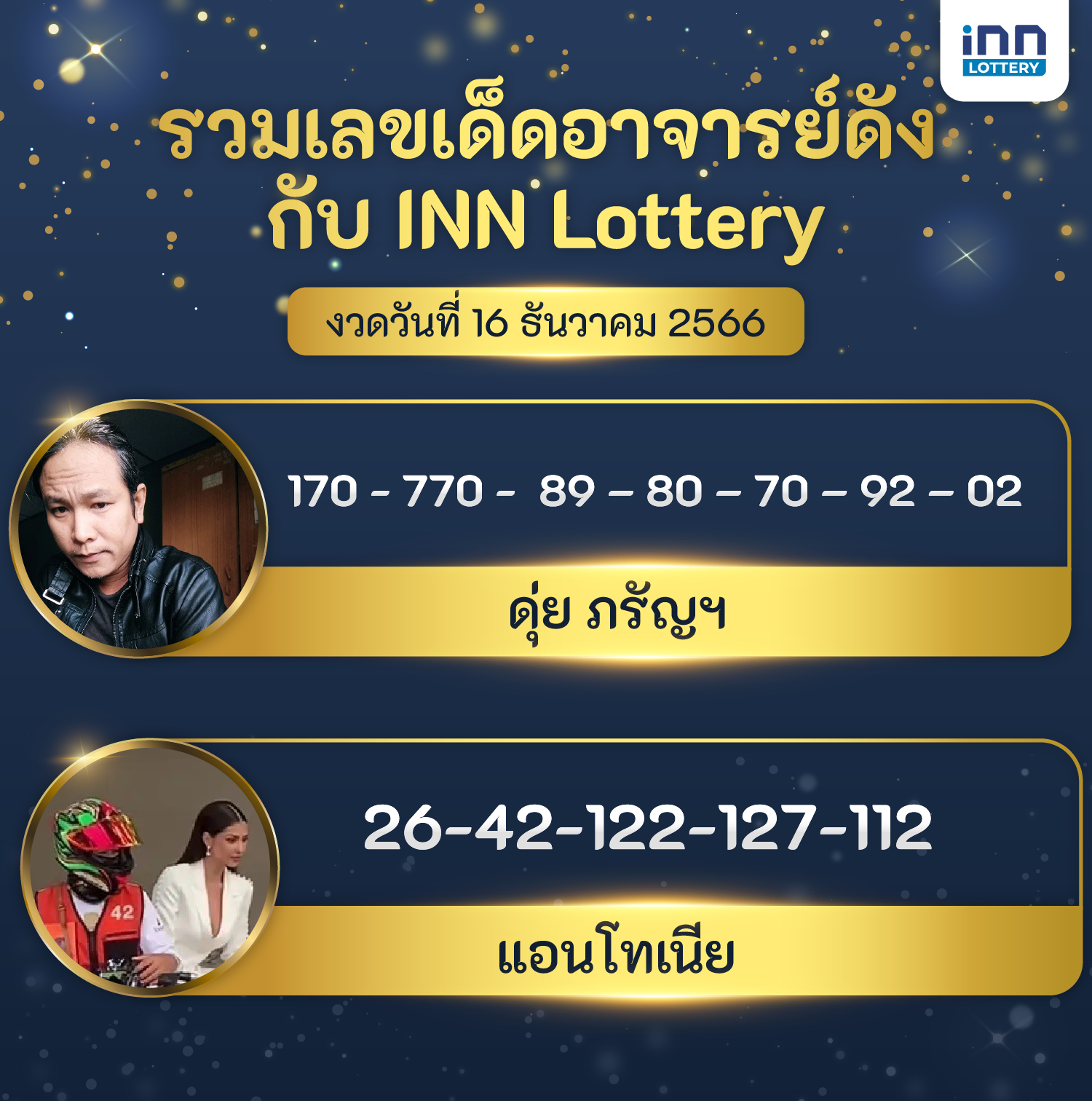รวมเลขอาจารย์ดัง เลขมาแรงงวดวันที่ 16 ธันวาคม 2566
