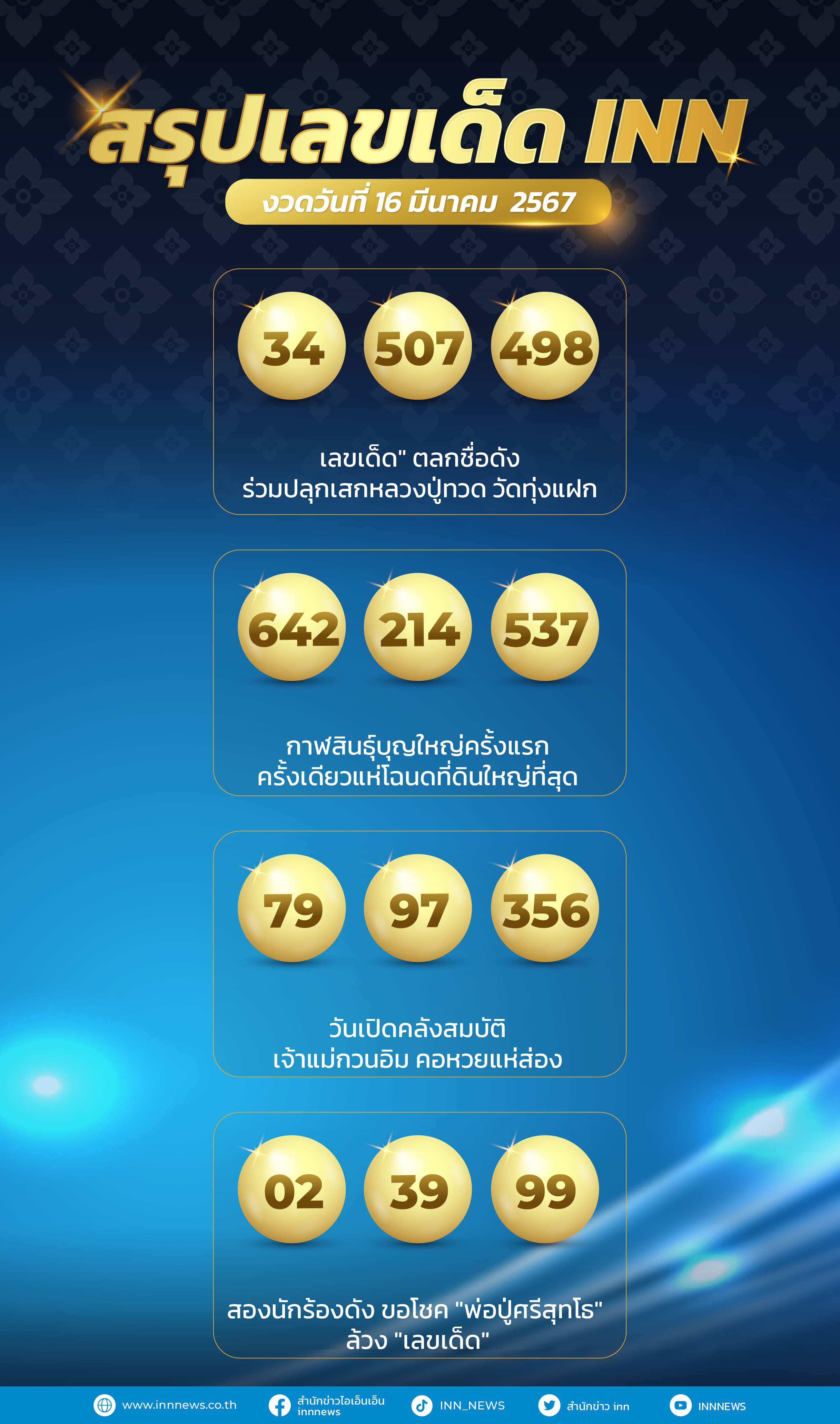 รวมเลขเด็ด เลขมาแรงทั่วไทยงวดวันที่ 16 มีนาคม 2567
