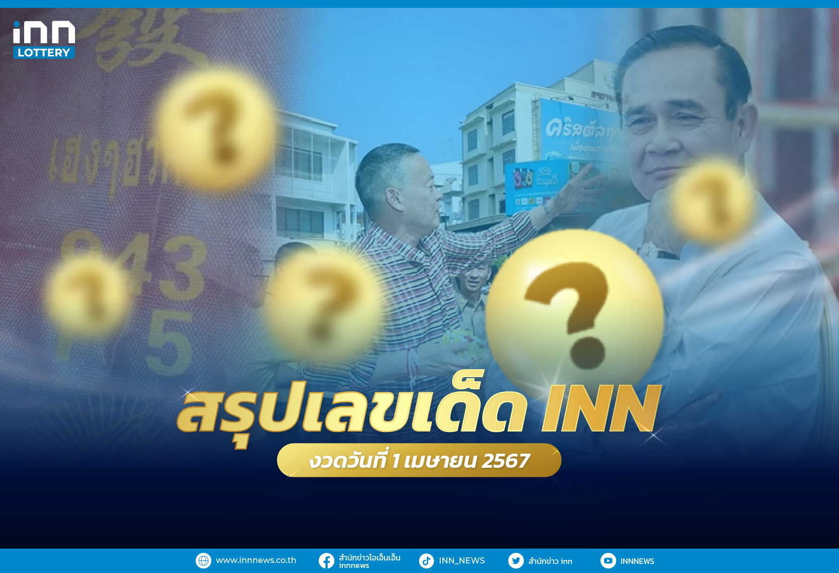 ติดตามเลขเด็ดจากเซียนหวย ตารางหวยงวดวันที่ 1/4/67 ได้ที่ ไอ.เอ็น.เอ็น. ลอตเตอรี่ พร้อมตรวจผลการออกรางวัลได้ที่ ตรวจผลรางวัลงวดล่าสุด ได้เลย