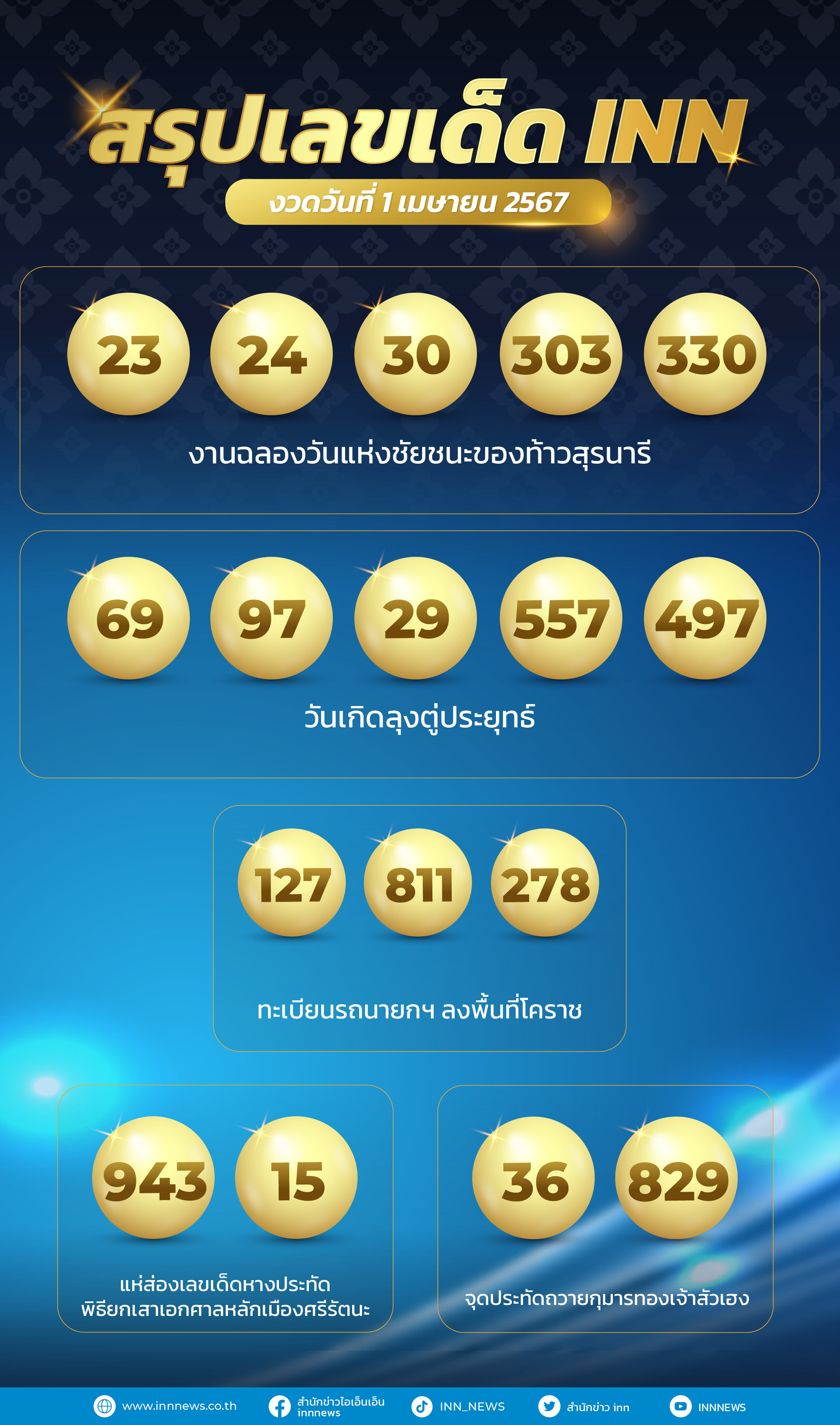 1.งานฉลองวันแห่งชัยชนะของท้าวสุรนารี เลขเด็ด 23-24-30-303-330