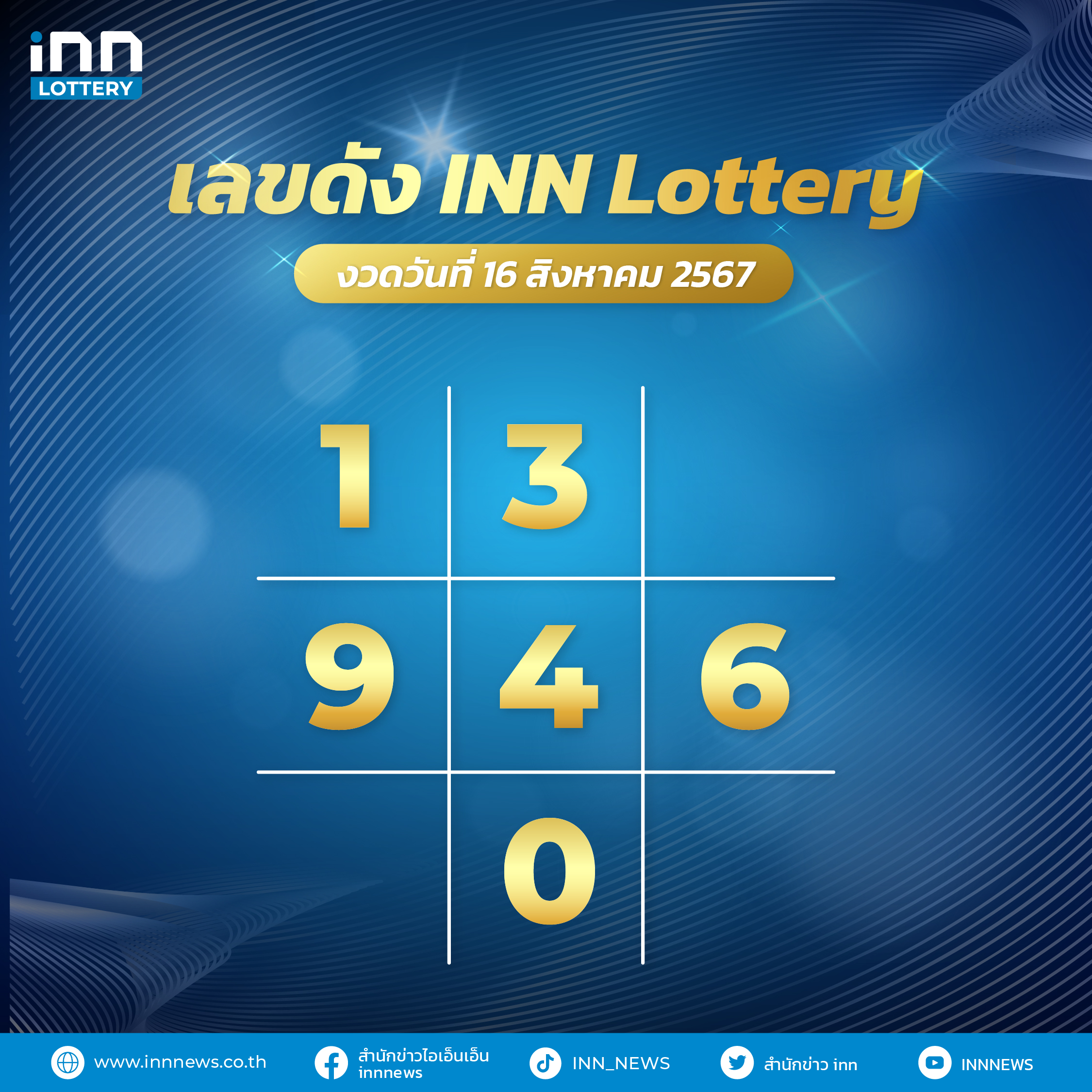 สามารถนำไปตีเลข จับคู่เลข เพื่อใช้เป็นเลขเด็ดงวด 16 สิงหาคม พ.ศ. 2567 ได้เลย สามารถติดตามเลขเด็ดจากทั่วประเทศไทยงวดนี้ สามารถกดดูเลขได้ที่ เลขดังเลขเด็ดกับ iNN lottery