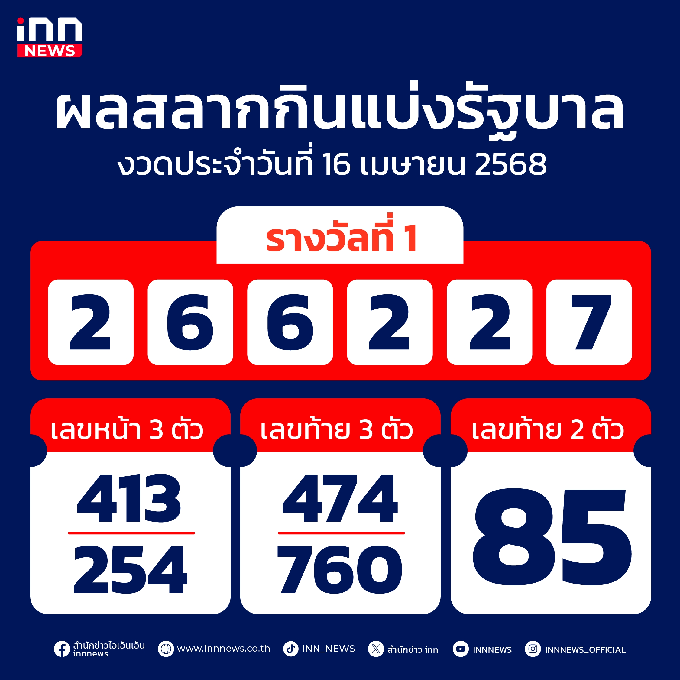 ตรวจผลสลากกินแบ่งรัฐบาล งวดวันที่ 16 เมษายน 2568 ใครถูกรางวัลขึ้นเงินอย่างไร เช็กที่นี่
