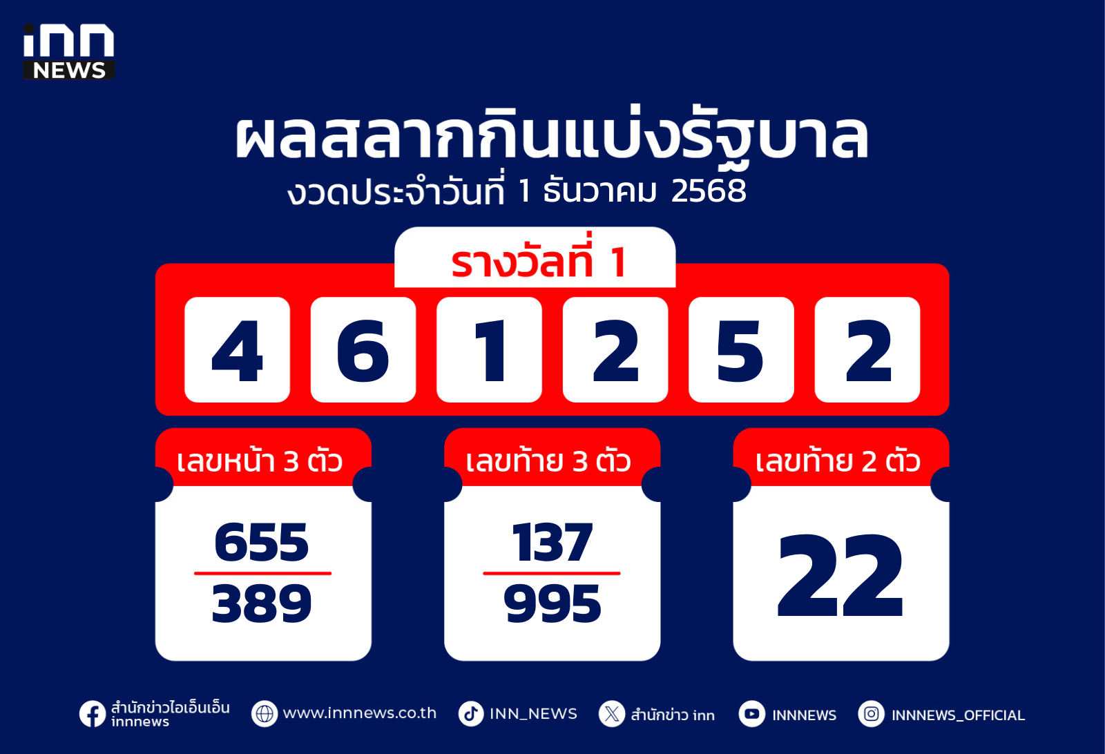 ตรวจหวยงวดประจำวันที่ 1 ธันวาคม 2568 สรุปเลขรางวัลงวดนี้