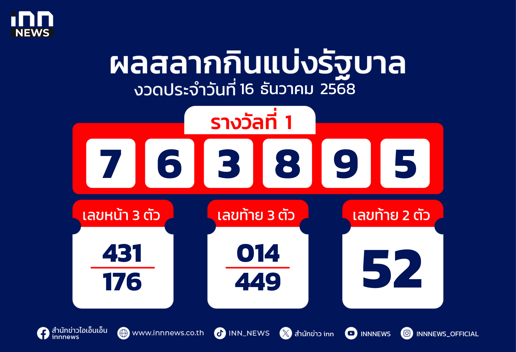 ตรวจหวยงวดประจำวันที่ 16 ธันวาคม 2568 สรุปเลขรางวัลงวดนี้