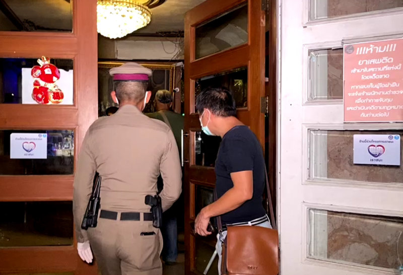 จากการตรวจค้นบริเวณโดยรอบพบซองพลาสติก ซึ่งภายในมีลักษณะคล้ายไอซ์จำนวนหนึ่ง ยาบ้า 1 เม็ด พร้อมเข็มฉีดยา จึงได้ทำการจับกุมผู้ต้องหาทั้งหมดในข้อหา ฝ่าฝืนประกาศกรุงเทพมหานคร เรื่อง สั่งปิดสถานที่เป็นการชั่วคราว ห้ามจัดกิจกรรมที่มีความเสี่ยงต่อการแพร่โรค ในพื้นที่ควบคุมสูงสุดและเข้มงวด ที่มีการรวมกลุ่มบุคคลจำนวนมากกว่า 20 คน โดยมิได้ขออนุญาต และฝ่าฝืนคำสั่งให้ปิดสถานประกอบการเพื่อสุขภาพ สปา ตาม พ.ร.บ.โรคติดต่อฯ และ พ.ร.ก.สถานการณ์ฉุกเฉินฯ