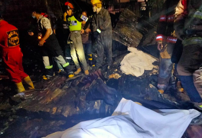 ทั้งนี้ ภายหลังเพลิงสงบ เจ้าหน้าที่ตรวจสอบ พบผู้เสียชีวิต 3 ราย อยู่ในซากกองเพลิง ยังไม่สามารถพิสูจน์ทราบได้ว่าเป็นใคร อยู่ระหว่างรอเจ้าหน้าที่ตำรวจ และเจ้าหน้าที่พิสูจน์หลักฐาน รวมทั้งแพทย์ เข้าร่วมชันสูตรพลิกศพในที่เกิดเหตุ