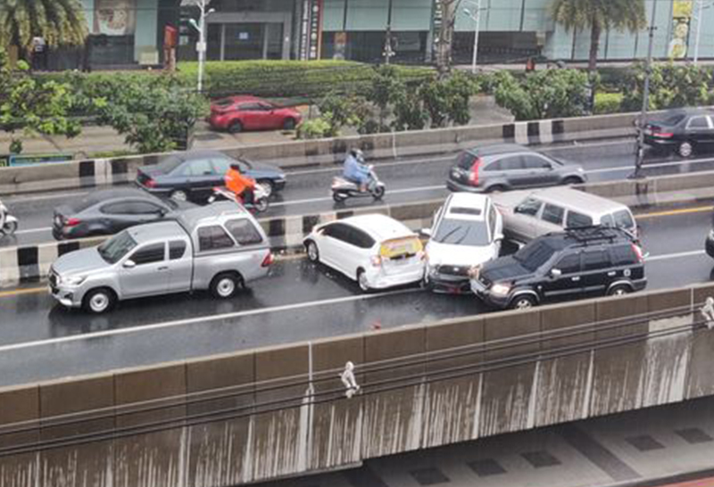 ฝนตกหลายพื้นที่ในกทม. พบปริมาณฝนรวมสูงสุดเขตบางแค 13.5 มม. พบรถชนกันหลายคันบนสะพานข้ามแยกรัชดา-ลาดพร้าว การจราจรติดขัด