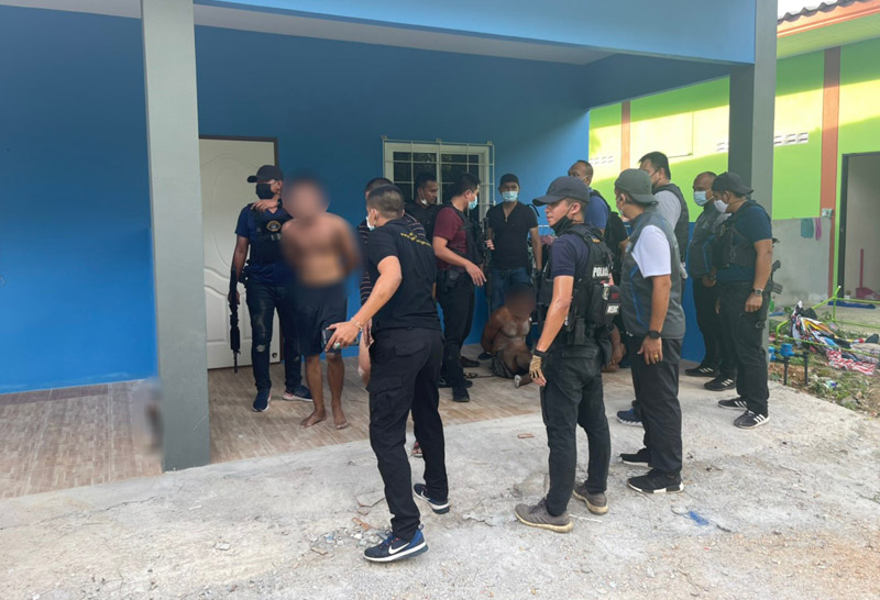 โดยสามารถจับกุมตัวผู้ต้องหาได้ จำนวน 4 คน ได้แก่ 1.นายอรรถพันธ์ อายุ 33 ปี 2.นายนายอภิสิทธิ์ อายุ 26 ปี 3.นายสุทธิรักษ์ อายุ 25 ปี 4.นายสิทธิพงษ์ อายุ 26 ปี ในความผิดฐาน “ร่วมกันกักขังหน่วงเหนี่ยวผู้ใดให้ได้มาซึ่งค่าไถ่, มีอาวุธปืนและเครื่องกระสุนปืนไว้ในครอบครองโดยไม่ได้รับอนุญาต, มียาเสพติดให้โทษประเภท 1 (ยาบ้าและยาไอซ์) ไว้ในครอบครองเพื่อจำหน่าย และ มียาเสพติดให้โทษประเภท 5 (กัญชา) ไว้ในครอบครองโดยผิดกฎหมาย” พร้อมยึดของกลาง อาวุธปืนและเครื่องกระสุนปืนทั้งหมด 80 นัด