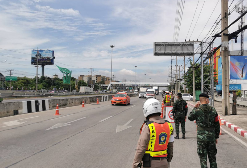 ซึ่งในพื้นที่ของจังหวัดปทุมธานี ได้มีการตั้งจุดตรวจ จุดสกัดร่วม จำนวน 4 จุด ซึ่งเป็นการบูรณาการทำงานร่วมกัน ระหว่างตำรวจ ทหาร ฝ่ายปกครอง และเจ้าหน้าที่จากกระทรวงสาธารณสุข โดยมีเป้าหมายคือการตรวจดูแรงงานต่างด้าวที่อพยพ หรือเดินทางออกต่างจังหวัด ว่ามีใบอนุญาตเข้ามาทำงานถูกกฎหมายหรือไม่ มีใบรับรอผลการตรวจโควิดหรือไม่ ซึ่งจะเน้นการสุ่มตรวจผู้โดยสารที่เดินทางมากับรถโดยสารสาธารณะ รถตู้ที่มีปลายทางอยู่ต่างหจังหวัดและรถสองแถวเป็นหลัก