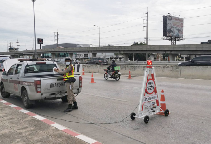 ซึ่งในพื้นที่ของจังหวัดปทุมธานี ได้มีการตั้งจุดตรวจ จุดสกัดร่วม จำนวน 4 จุด ซึ่งเป็นการบูรณาการทำงานร่วมกัน ระหว่างตำรวจ ทหาร ฝ่ายปกครอง และเจ้าหน้าที่จากกระทรวงสาธารณสุข โดยมีเป้าหมายคือการตรวจดูแรงงานต่างด้าวที่อพยพ หรือเดินทางออกต่างจังหวัด ว่ามีใบอนุญาตเข้ามาทำงานถูกกฎหมายหรือไม่ มีใบรับรอผลการตรวจโควิดหรือไม่ ซึ่งจะเน้นการสุ่มตรวจผู้โดยสารที่เดินทางมากับรถโดยสารสาธารณะ รถตู้ที่มีปลายทางอยู่ต่างหจังหวัดและรถสองแถวเป็นหลัก