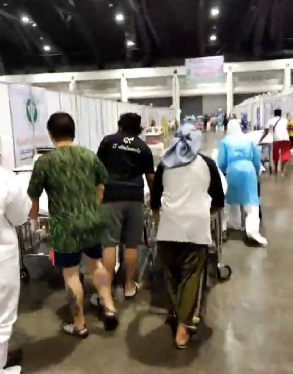 เมื่อช่วงเช้าที่ผ่านมา เจ้าหน้าที่อาสาสมัคร ในฐานะจิตอาสา ที่รู้จักกันในชื่อ “บังซา” ปฏิบัติงานช่วยเหลือ ผู้ป่วยโควิด-19 ภายใน โรงพยาบาลบุษราคัม ได้ไลฟ์สดทางเฟซบุ๊ก “เหนือ หนึ่ง ห้า” ว่า ได้เข้าไปรับศพผู้เสียชีวิต จากการติดเชื้อโควิด-19 ภายในโรงพยาบาล โดยระบุว่า ไม่กลัติดเชื้อจากศพ เพราะเจ้าหน้าที่ ที่ปฏิบัติงานภายในโรงพยาบาลบุษราคัม ทำการห่อศพอย่างดีเป็นไปตามมาตรการ ก่อนจะทำการเคลื่อนย้ายศพออกจากโรงพยาบาลบุษราคัม นับรวมแล้ว 8 ศพ เพื่อนำศพไปมอบให้กับญาติเพื่อนำไปทำพิธีทางศาสนา
