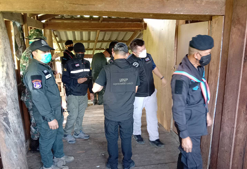 โดยจากการหาข้อมูลของรถยนต์ดังกล่าวที่ใช้ในการขนไม้ พบว่าเจ้าของและผู้ถือกรรมสิทธิ์รถยนต์มีภูมิลำเนาอยู่ที่ อำเภอแม่แจ่ม จังหวัดเชียงใหม่ จึงได้ขออนุมัติหมายค้นศาลจังหวัดฮอด โดยเมื่อมาถึงพบว่าบ้านมีลักษณะเป็นบ้านไม้ ไม่พบเจ้าของบ้านและมีการล็อกประตูด้วยกุญแจไม่สามารถเปิดได้ เจ้าหน้าที่ได้ประสานผู้ใหญ่บ้าน เพื่อสอบถามผู้ครอบครองที่ดินซึ่งแจ้งว่าไม่ทราบว่าเจ้าของบ้านหลังดังกล่าวอยู่ไหน เจ้าหน้าที่จึงได้แสดงหมายค้นในการเข้าตรวจสอบโดยมีผู้ใหญ่บ้านรับทราบ จากการตรวจสอบบริเวณรอบบ้านพบมีอาวุธปืน เลื่อยโซ่ยนต์ ไม้เต็งแปรรูป และไม้ประดู่ป่าแปรรูปที่มีลักษณะและขนาดตามที่ได้ตรวจยึดได้