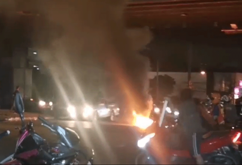 ม็อบทะลุแก๊สจุดไฟเผายางรถยนต์แยกดินแดง ยิงพลุประทัดระเบิดดังสนั่นเป็นระยะ