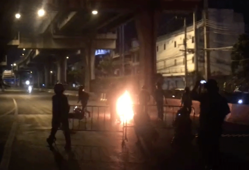 ม็อบเผายางรถยนต์ใต้ทางด่วนดินแดง จุดประทัดดังสนั่นต่อเนื่อง แต่ยังไร้เงาเจ้าหน้าที่ตำรวจควบคุมฝูงชน