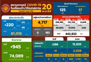 เรือนจำติดเชื้อโควิด19เพิ่มอีก 220 ราย สะสม 81,018 ราย ฉีดวัคซีนแก่ผู้ต้องขังไปแล้วทั้งสิ้น 442,822 โดส