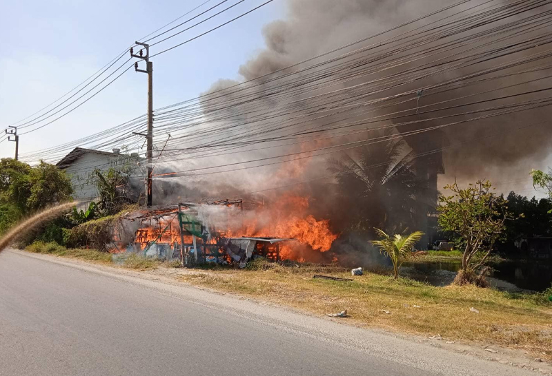 ไฟไหม้หญ้าลามติดร้านค้าวอด โรงงานพลาสติกใกล้เคียงหวิดไหม้