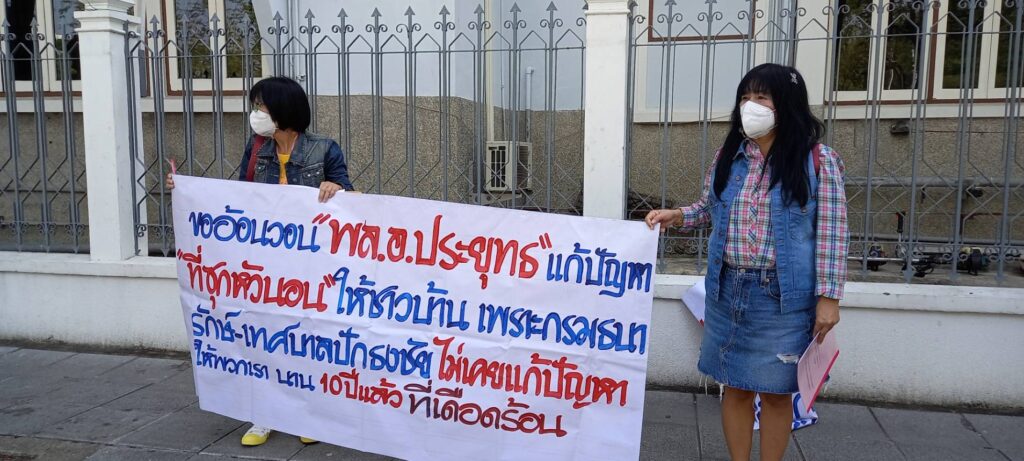 “ชาวบ้านปักธงชัย” ก้มกราบข้างทำเนียบ วอนนายกรัฐมนตรี ให้ความเป็นธรรม หลังบ้านที่ถูกไฟไหม้ถูกสร้างผิดแบบ นาน 10 ปี คดีไม่คืบ