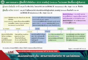 นายแพทย์จักรรัฐ พิทยาวงศ์อานนท์ ผู้อำนวยการกองระบาดวิทยา กรมควบคุมโรค เปิดเผยรายละเอียดของผู้ติดเชื้อโควิด 19 สายพันธุ์โอไมครอน รายแรกที่เป็นการติดเชื้อในประเทศไทยโดยระบุว่า ผู้ป่วย 2 รายนี้ เป็นสามีภรรยา โดยสามีเป็นนักบินชาวโคลัมเบีย ได้รับวัคซีนแอดตราเซเนก้า มาแล้ว 2 เข็ม เดินทางเข้าประเทศไทยเมื่อวันที่ 26 พ.ย. เดินทางมาจากไนจีเรีย เมื่อมาถึง เข้าระบบแซนด์บอกซ์ ผลตรวจเบื้องต้น RT PCR เป็นลบ แต่การอยู่ในระบบแซนด์บอกซ์ในกทม. สามารถเดินทางออกนอกพื้นที่กักตัวได้แต่อยู่ภายใต้มาตรการกำกับดูแล วันที่ 29 พ.ย. ผู้ป่วยขอไปตรวจดวงตาที่ โรงพยาบาลแห่งหนึ่ง มีการสวมแมสก์ ตลอดเวลา เช่า รถจยย. ไปซื้อของที่ร้านค้า ไปกินข้าวเที่ยงที่ห้างสรรพสินค้า วันที่ 1 ธ.ค. ขอไปฉีดวัคซีนไฟเซอร์ จากนั้น กลับมามีไข้ เมื่อตรวจ ATK ผลเป็นลบ วันที่ 3 ธ.ค. ออกจากโรงแรมที่กักตัว รถโรงแรมไปส่งที่ห้างสรรพสินค้า ผู้ป่วยแวะร้านสะดวกซื้อ และส่งกลับบ้านที่ ลำลูกกา จ.ปทุมธานี