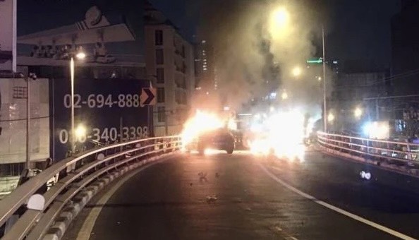 เมื่อเวลา 03.20 น. วันที่ 26 ธ.ค. 2564 ตำรวจ สน.ดินแดง ได้รับแจ้งมีอุบัติเหตุรถชนกันเกิดเพลิงลุกไหม้ มีผู้บาดเจ็บ เหตุเกิดบนสะพานข้ามแยกสามเหลี่ยมดินแดง แล้วเกิดเพลิงไหม้มีคนบาดเจ็บ จึงเข้าตรวจสอบเหตุพร้อมอาสาสมัครป่อเต็กตึ๊ง