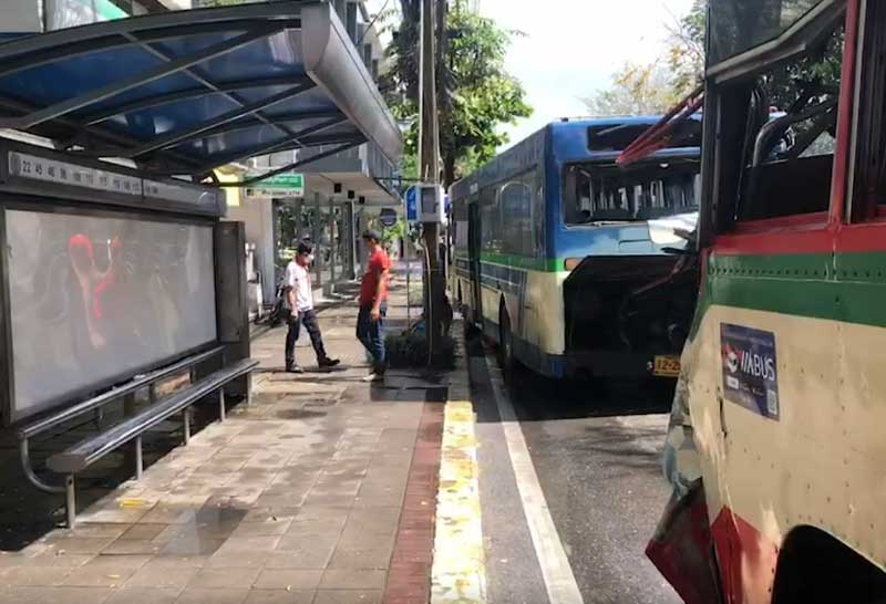 รถเมล์ชนสนั่นแยกกล้วยน้ำไท เจ็บนับ 10 ราย