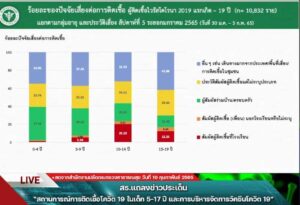 วันนี้( 10 ก.พ.65) ที่กระทรวงสาธารณสุข นพ.จักรรัฐ พิทยาวงศ์อานนท์ ผู้อำนวยการกองระบาดวิทยา กรมควบคุมโรค พร้อมด้วย นพ.วิชาญ ปานวัน ผู้อำนวยการกองโรคติดต่อทั่วไป กรมควบคุมโรค ร่วมกันแถลงสถานการณ์การติดเชื้อโควิด 19 ในเด็ก 5-17 ปี และ การบริหารจัดการวัคซีนโควิด 19